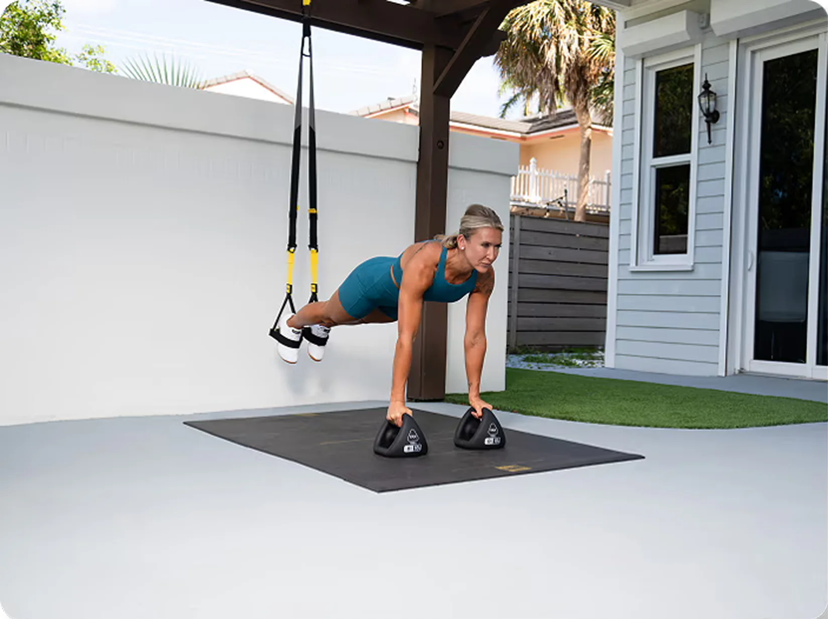 The Home2 Suspension Trainer does it all: legs, chest, core, arms. It's like having the entire gym in one strap.